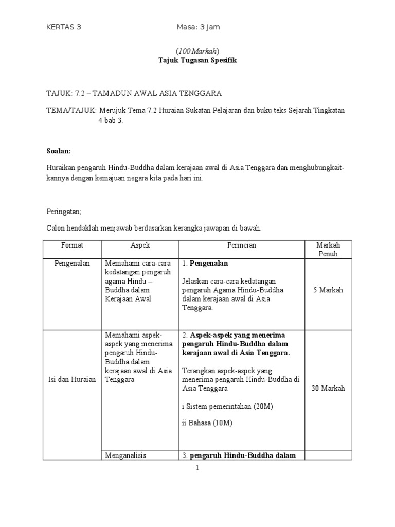 Contoh Soalan Kbat Sejarah Kertas 3 Tingkatan 4 Bab 5 Miss Pedantic Kertas 3 Sejarah Jawapan Bab 5 Ting 4 Piagam Madinah Tingkatan 4 Sejarah Bab 1 Kemunculan Tamadun Awal Manusiatamadun Mesir1 Di. BUKTI PENGARUH HINDU BUDDHA DI ASIA TENGGARA Peninggalan data arkeologi menunjukkan ciri Hindu di Lembah Bujang Buddha di Srivijaya Hindu-Buddha di Angkor Wat Data catatan I-Tsing terdapat 1000 bhisku pelajari agama Buddha di Srivijaya sebelum lanjutkan pelajaran ke Nalanda India Atisa guru agama Buddha dari Tibet pernah. Pengaruh Agama Hindhu dan Buddha dalam Kerajaan Awal.